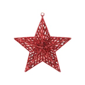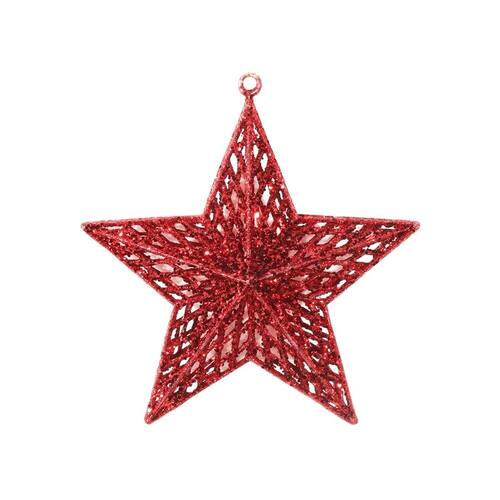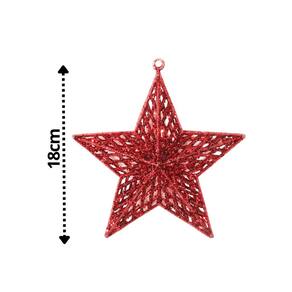 Estrela 3D Glitter Vazada Vermelha (18cm) – Com Furo para Pendurar