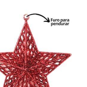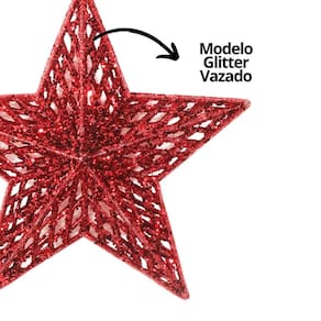- 01 Unidade Estrela 3D Glitter Vazada Vermelha (18cm) – Com Furo para Pendurar
