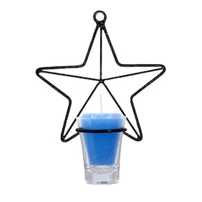 Arandela Estrela P Acompanha 1 vela no copinho na cor azul Produtos da marca Velitas. Somos uma fábrica, de velas e ferros decorativos, desde de 1984 no mercado. Arandela: Peça em ferro com pintura eletrostática, que garante uma maior resistência e durabilidade em comparação com peças esmaltadas ou com pintura spray. Pintura marrom escura, quase preta, com minúsculos pontos pretos e dourados. A pintura dá um efeito especial a peça. Peça produzida de forma artesanal. Medidas: Altura: 16 cm largura: 14 cm profundidade: 8 cm Peça desenhada para uso na parede, não há risco de a chama estragar a pintura se forem usadas somente velas de parafina pura. Para paredes de tijolo, recomendamos o uso de bucha com parafuso, o mais seguro é o parafuso em L, ele garante uma melhor fixação. Copinho de vidro: O copo de vidro é da Nadir Figueiredo, além de ser resistente ele é facilmente encontrado em vários lugares no Brasil. Medidas do copo: altura: 7 cm diâmetro superior boca : 5,2 cm diâmetro inferior base : 3,5 cm Velas: Velas de parafina pura Petrobras, contêm apenas corante nas velas coloridas. A vela pura garante uma maior durabilidade, não produz fumaça preta que possa sujar a parede ou criar um aspecto desagradável, e também possui um cheiro suave e natural da parafina. Nossas velas no copinho foram projetadas para fácil reposição já que são removíveis, o produto acompanha indicações de uso para facilitar a limpeza do copo após a utilização. Duração da vela: Aproximadamente 12 horas, o tempo pode variar de acordo com a temperatura ambiente. Medidas: altura: 5,2 cm diâmetro superior boca : 4,5 cm diâmetro inferior base : 2,7 cm Imagens meramente ilustrativas, o produto pode apresentar pequenas variações por se tratar de um produto artesanal. Aviso de segurança: Acenda as velas longe de produtos inflamáveis, de corrente de ar e em recipiente protetor. Não deixe velas acesas desacompanhadas. Marca: Velitas (r)