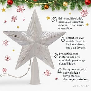 A Estrela Ponteira LED Colorida irá tornar seu Natal inesquecível e repleto de brilho. Explore outros produtos incríveis em nossa loja VIFES SHOP e descubra tudo para sua decoração natalina!
