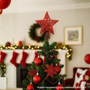 Destaque o topo da sua árvore com a Estrela Ponteira Arabesco Luxo Vermelho, uma peça elegante e sofisticada que traz brilho e requinte à sua decoração natalina.