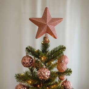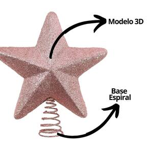 Deixe sua árvore de Natal ainda mais sofisticada com esta estrela ponteira rosê, modelo tridimensional com acabamento em glitter brilhante que garante destaque e luminosidade especial à decoração. Sua base espiral metálica oferece encaixe firme e prático no topo da árvore, trazendo elegância e estabilidade.