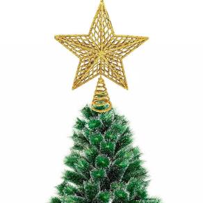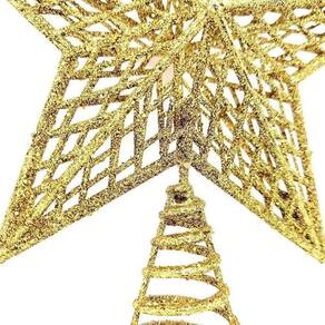 1 Estrela Com Glitter Dourado De 20cm Para Topo De Árvore De Natal;