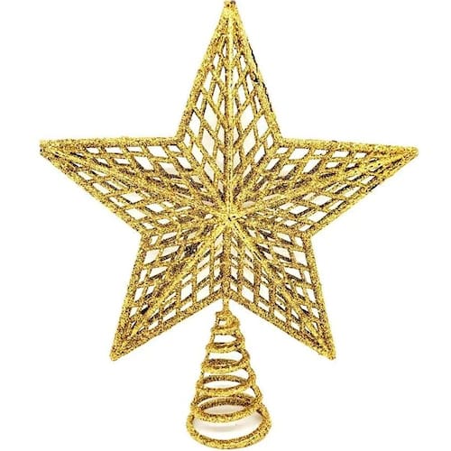 1 Estrela Com Glitter Dourado De 20cm Para Topo De Árvore De Natal;