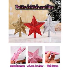 Estrela Ponteira Para Arvore de Natal Glitter 20cm Linda Decore sua avore de natal com essa linda Ponteira Estrela Esse modelo é confeccionado de material resistente e coberta de glitter para deixar sua decoração mais completa e trazendo um toque de luxo pra sua arvore Essa ponteira estrela traz todo espírito natalino e um toque elegante para a sua arvore nessa época linda e importante que é o Natal. Possui 20 cm e de facil encaixe Adquira já
