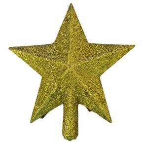 Estrela ponteira para topo de árvore de natal art christmas glitterado com laço 15 cm