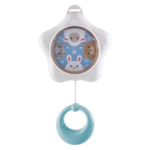 A estrelinha musical da buba toca uma linda canção de ninar para atrair a atenção ou até mesmo embalar o sono do bebê. Basta puxar a cordinha e os 4 animalzinhos se movem em círculos. Com som e cores suaves, acalma e estimula o desenvolvimento auditivo dos pequenos.
