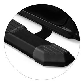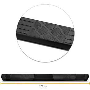 Fabricado em alumínio na cor Preto, material de alto padrão e resistência que possibilita a capacidade máxima suportada de até 100 kg para subida, o estribo acompanha em toda sua extensão um pisante anti-derrapante a fim de garantir a segurança para o motorista e passageiro.