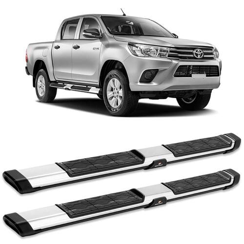 O Estribo Lateral My Road para Toyota Hilux, é um acessório que além da estética tem como objetivo auxiliar na entrada e saída do motorista e dos passageiros e proteger a lateral do veículo contra barro e pedras, proporcionando um visual ainda mais completo com design moderno e esportivo para sua Pick up.