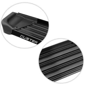Fabricado em alumínio na cor preta com capacidade máxima suportada de até 100kg para subida, o estribo também acompanhapisante antiderrapantee possui também ponteiras injetadas em plástico ABS, concedendo ainda mais beleza à peça em toda sua extensão a fim de garantir maior segurança ao pisar.
