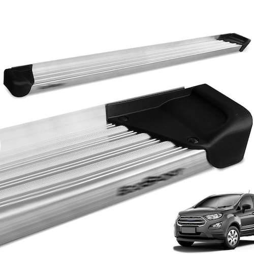 Especificações Técnicas: Capacidade de até 100 kg distribuídos Cor do estribo em alumínio Natural Não realiza furos para fixação Completo com kit de instalação Design elegante e moderno Cor do Estribo: Natural Pisante Antiderrapante Fabricado em Aluminio Adesivo ResinadoTabela de Aplicação: Ecosport 2013 Ecosport 2014 Ecosport 2015 Ecosport 2016 Ecosport 2017 Ecosport 2018 Ecosport 2019 Ecosport 2020 Ecosport 2021 Compatível com todas as versões.