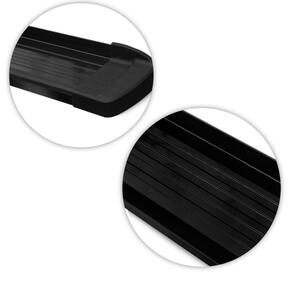Estribo com pintura preta com excelente acabamento lateral em alumínio preto e ponteiras injetadas em poliuretano, concedendo ainda mais beleza à peça acompanhado ao melhorcusto-benefíciodo ramo.