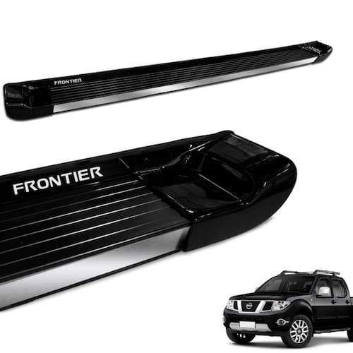 Fabricado em Aluminio de alta qualidade e resistência e ponteiras em plástico injetado ABS, com pintura automotiva na cor Preto Premium de alto padrão, além de acabamento lateral cromado em aço inox e adesivo em alto-relevo resinado com o nome do veículo e pisante na cor preta para um estilo diferenciado.