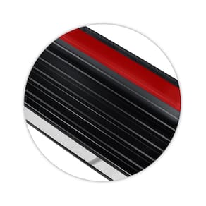 Especificações Técnicas: Suporta 100kg distribuidos Fabricado em Aluminio Design elegante e moderno Adesivo Resinado Cor do estribo Vermelho Alert Ponteiras em Plástico Injetado ABS Pisante na cor preto Acabamento Lateral em Inox cromado