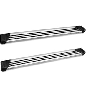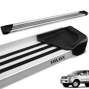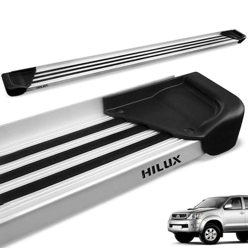 Estribo na cor do alumínio Natural com excelente acabamento lateral e ponteiras injetadas em poliuretano, concedendo ainda mais beleza à peça acompanhado ao melhor custo-benefício do ramo.