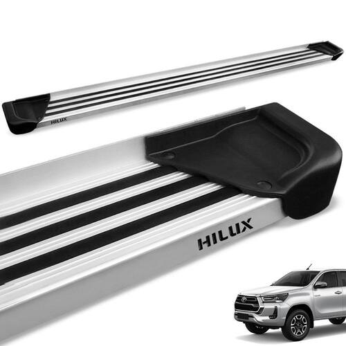 Estribo na cor do alumínio Natural com excelente acabamento lateral e ponteiras injetadas em poliuretano, concedendo ainda mais beleza à peça acompanhado ao melhor custo-benefício do ramo.