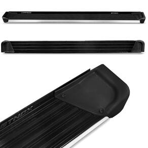 Especificações Técnicas: Fabricado em Aluminio Faixa Lateral em Inox Design elegante e moderno Adesivo Resinado Cor do estribo em alumínio Preto Capacidade de até 100 kg distribuídos Pisante Antiderrapante Não realiza furos para fixação Completo com kit de instalaçãoDimensões e peso da embalagem:
