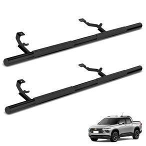 Fabricado em Aço Cabono, com suas ponteiras em poliuretano, cujo materia de excelente qualidade conhecido pela sua alta resistência e durabilidade, possuindo acabamentos na cor preto deixando a sua picape com um visual ainda mais completo.