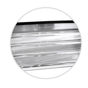 Fabricado em alumínio Polido, material de alto padrão e resistência que possibilita uma capacidade máxima suportada de até 100kg para subida e descida. Possui friso de borracha na traseira, com função de proteger contra sujeira e dar acabamento estético.