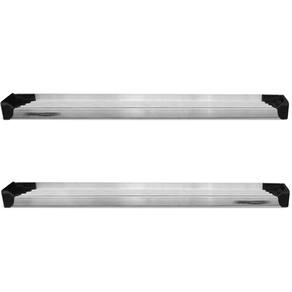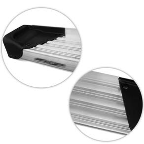 Especificações Técnicas: Capacidade de até 100 kg distribuídos Ponteira injetada em Plástico ABS Acabamento lateral em alumínio Completo com kit de instalação Design moderno e esportivo Pisante antiderrapante Fabricado em alumínio Estribo na cor Natural Não precisa de Furações