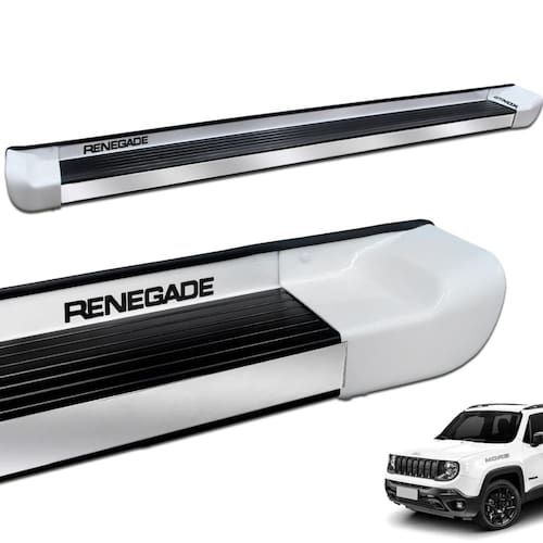 Fabricado em Aluminio de alta qualidade e resistência e ponteiras em plástico injetado ABS, com pintura automotiva na cor Branco Ambiente de alto padrão, além de acabamento lateral cromado em aço inox e adesivo em alto-relevo resinado com o nome do veículo e pisante na cor preta para um estilo diferenciado.