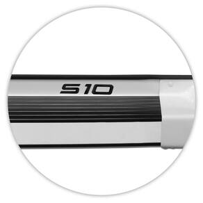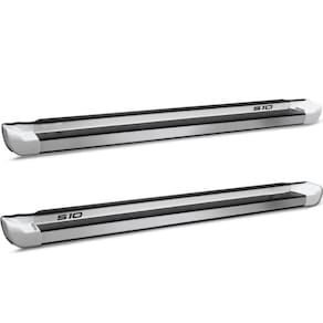 Fabricado em Aluminio de alta qualidade e resistência e ponteiras em plástico injetado ABS, com pintura automotiva na cor Branco Malher de alto padrão, além de acabamento lateral cromado em aço inox e adesivo em alto-relevo resinado com o nome do veículo e pisante na cor preta para um estilo diferenciado.
