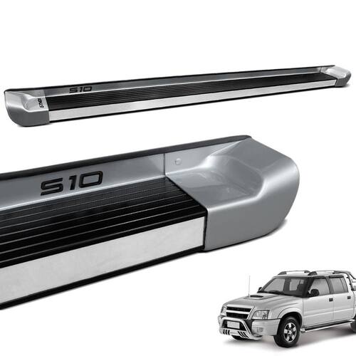 Fabricado em Aluminio de alta qualidade e resistência e ponteiras em plástico injetado ABS, com pintura automotiva na cor Prata polaris de alto padrão, além de acabamento lateral cromado em aço inox e adesivo em alto-relevo resinado com o nome do veículo e pisante na cor preta para um estilo diferenciado.