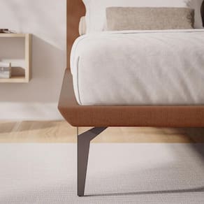 Aposte na originalidade e no aconchego da Cama Japonesa Tóquio da Arte Estofados. Com acabamento em linho na cor telha, ela traz personalidade e conforto ao seu quarto.