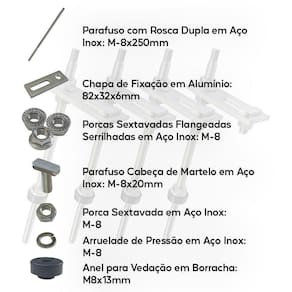 - 4 Parafusos com Rosca Dupla em Aço Inox: M8x250mm;