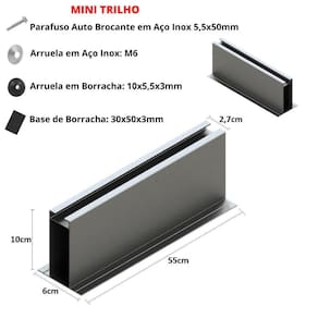 01 Perfil Mini Trilho em Alumínio: 100x60x550mm 06 parafuso Auto Brocante em Aço Inox: 5,5x50mm 06 arruela em Aço Inox: M6 06 arruela em Borracha: 10x5,5x3mm 06 base de Borracha: 30x50x3mm Marca: Perfil Master Ean: 7908388810439