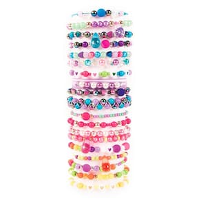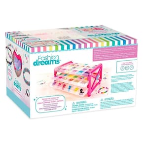 Contém: 1 organizador com 3 bandejas, 2600 contas, 120 argolas de montagem, 8 pedaços de cordão encerado, 8 m, 4 pedaços de cordão elástico transparente, 4 m e 1 folha de instruções.