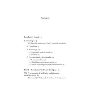 A presente edição em português dos Estudos sobre a personalidade autoritária , de Theodor W. Adorno, é resultado de uma seleção de textos da obra autêntico de quase mil páginas intitulada The Authoritarian Personality , escrita por Adorno, Levinson, Sanford e Frenkel-Brunswik e publicada em 1950 nos Estados Unidos. Os textos que compõem o presente livro debatem como, em plena Segunda Guerra Mundial, o fascismo não era um episódio isolado, mas estava presente de forma latente em amostras da população norte-americana da época. Sua base de argumentação procura expor como o autoritarismo mantém relações profundas com o “clima cultural geral” do modo capitalista de organização socioeconômica – o que preserva a atualidade dessa investigação.
