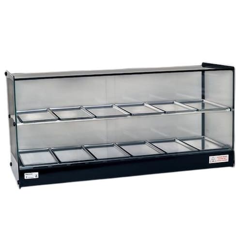 Com estrutura fabricada em perfil de alumínio anodizado e aço inox; bandejas com dobras em aço inox; vidros laterais com serigrafia, tratados termicamente (não solta com temperatura); com todos os vidros temperados; termostato; resistência elétrica em aço inox 304 tubular; fiação elétrica com revestimento em silicone resistente a 300C. A linha EVR, traz a referências do estilo retrô para o seu negócio. Seu design clean e compacto confere melhor visualização dos produtos, além de preserva-los quentes e saborosos.