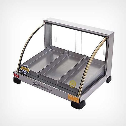 - Bandejas em aço inoxidável com 3 cm de altura;