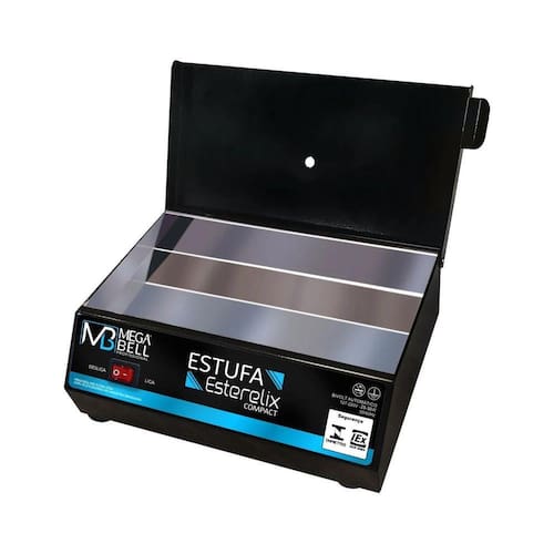 Esterelix compact mega bell é um equipamento portátil destinado para esterilização de alicates de manicure e pequenos instrumentos em geral, em aço inox. Foi desenvolvida para atingir uma temperatura ao redor de 170°c, com variação +- 10%, e permanece assim enquanto estiver ligada, para interromper o aquecimento, deve-se acionar a chave liga/desliga.