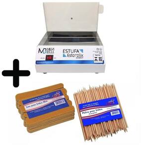 Super kit estufa + 144 mini lixas + 100 palitos manicureA estufa para manicure mega bell é um equipamento portátil esterilizador de alicates e instrumentos de aço inox, destinado ao uso doméstico.Foi desenvolvida para atingir uma temperatura de 170c e permanece nesta temperatura por todo o tempo em que estiver ligada.Capacidade: 3 a 4 alicates.Voltagem: aparelho bivolt automático 127v/240v Este aparelho é bivolt automático, pode ser ligado tanto em 110v como em 220v sem risco de queimar.Modelo: estufa compact esterelixDimensões: 150mm l x 75mm a x 200mm cPeso: 900grPotência: 50wattsTemperatura: 0/170ºcFabricante: mega bellItens inclusos no kit:01 - estufa para manicure esterelix compact mega bell.01 - pacote com 144 mini lixas 8cm santa clara.01 - pacote com 100 palitos manicure pedicure madeira laranjeira 12cm santa clara.