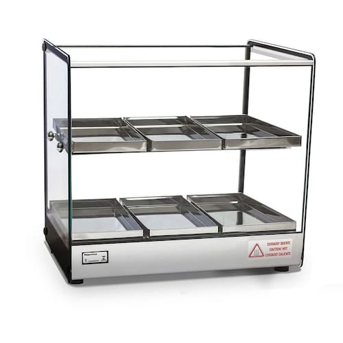 Estufa Quadrada 3 Bandejas Duplas Titã. Estufa com estrutura em perfil de alumínio anodizado e aço inox. Vidros temperados. Acompanha 6 Bandejas em aço inox. Controle de temperatura com termostato analógico. Iluminação LED. Resistência elétrica em aço inox 304 tubular. DIMENSÕES (CxAxL): 47x45x36cm. POTÊNCIA: 252w. CONSUMO: 0,2Kwh. Medida das bandejas (CxAxL:) 14x2x28cm. Estufa para salgado EVR Titã é na Atau.