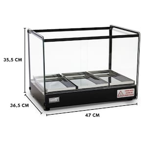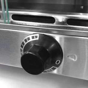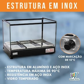 A estufa dupla EVR LP acompanha iluminação led, com perfil de alunínio anodizado em aço inox e bandejas com dobras em aço inox. Todos os vidros temperados e com termostato ideal para seu negocio.