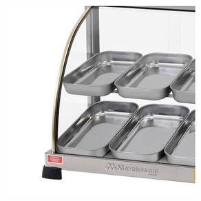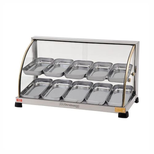 Estufa para salgados ouro de 10 bandejas curva - marchesonise você é proprietário de um bar, lanchonete, padaria ou restaurante, não poderá ficar sem este produto em seu estabelecimento uma maneira prática e eficaz de preservar seus salgados, além de mantê-los mais quentes durante um maior período de tempo. O umidificador, ajuda a evitar que os alimentos sejam desidratados e ressecados, preservando assim, sua textura e sabor. Características:bandejas em aço inoxidável com 3 cm de altura;perfil/friso dourado em plástico abs. Elegantes frisos dourados;termostato bimetálico regulável para economia de energia elétrica;resistência tubular de baixo consumo 250 w - 0,25 kwh;umidificador. Seus produtos sempre fresquinhos;ideal para conservar salgados, pastéis, assados em geral esfihas, croissants, tortas, empadas . Especificações: marca: marchesoni modelo: ef.2.031-032 bandejas: 10 comprimento: 68 cm largura: 33,5 cm altura: 37 cm peso: 12 kg alimentação:220 v consumo: 250w / 0,25kw/h umidificador: sim certificação do inmetro: bra ho 13/0172