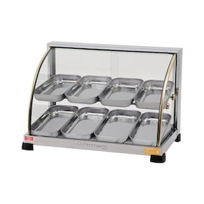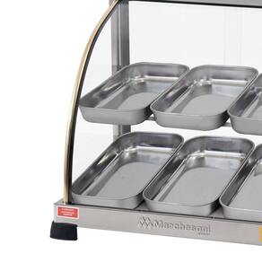 Estufa Ouro 8 Bandejas MarchesoniAs estufas da linha Ouro Marchesoni destacam-se pelo melhor custo benefício do mercado e são ideais para expor com elegância e manter seus produtos sempre quentinhos.Fabricadas em aço inox, frisos dourados e vidros temperados as Estufas Ouro Marchesoni valorizam a exposição dos seus produtos alavancando suas vendas.Possuem em todos os modelos termostato de temperatura automático, lâmpada piloto indicadora de aquecimento e umidificador que evita o ressecamento dos alimentosSão indicadas para bares, padarias, restaurantes, cafeterias, lanchonetes, lojas de conveniência e serviços de alimentação em geral.Características:bandejas em aço inoxidável com 3 cm de alturaElegantes frisos douradosTermostato bimetálico para economia de energia elétricaResistência tubular de baixo consumoVidros Temperados: maior segurançaUmidificador: Seus produtos sempre fresquinhosIdeal para expor e conservar alimentos sempre quentinhosIndicadas para bares, padarias, restaurantes, cafeterias, lanchonetes, lojas de conveniência e serviços de alimentação em geralEspecificações:Consumo: 250w / 0,25KW/HAlimentação: 220VDimensões CxLxA : Produto: 55 x 33,5 x 37 cm Peso: 10kg