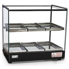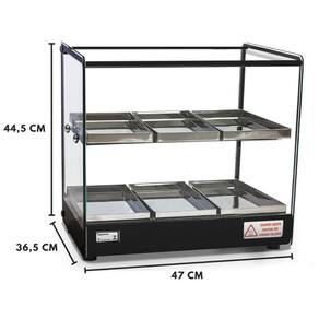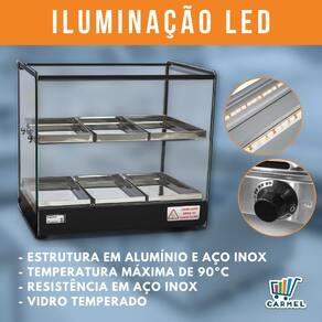 A estufa dupla EVR LP acompanha iluminação led, com perfil de alunínio anodizado em aço inox e bandejas com dobras em aço inox. Todos os vidros temperados e com termostato ideal para seu negocio.
