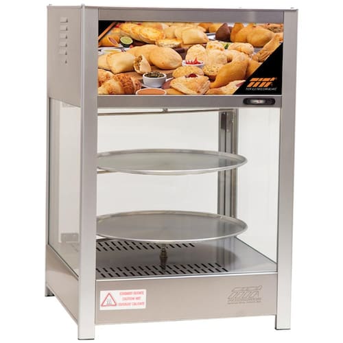 Estufa Giratória estrutura fabricada em perfil de alumínio anodizado e aço inox, todos os vidros temperados, termostato e exclusivo sistema giratório de 3 bandejas, fiação elétrica com revestimento em silicone resistente a 300°C.