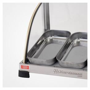 Estufa para salgados ouro de 3 bandejas curva - marchesonise você é proprietário de um bar, lanchonete, padaria ou restaurante, não poderá ficar sem este produto em seu estabelecimento uma maneira prática e eficaz de preservar seus salgados, além de mantê-los mais quentes durante um maior período de tempo. O umidificador, ajuda a evitar que os alimentos sejam desidratados e ressecados, preservando assim, sua textura e sabor.Características:bandejas em aço inoxidável com 3 cm de altura;perfil/friso dourado em plástico abs. Elegantes frisos dourados;termostato bimetálico regulável para economia de energia elétrica;resistência tubular de baixo consumo 250 w - 0,25 kwh;umidificador. Seus produtos sempre fresquinhos;ideal para conservar salgados, pastéis, assados em geral (esfihas, croissants, tortas, empadas).Especificações:marca: marchesonimodelo: ef.2.031-032bandejas: 3comprimento: 34 cmlargura: 42 cmaltura: 280 cmpeso: 6 kgalimentação:220 vconsumo: 250w / 0,25kw/humidificador: simcertificação do inmetro: bra ho 13/0172