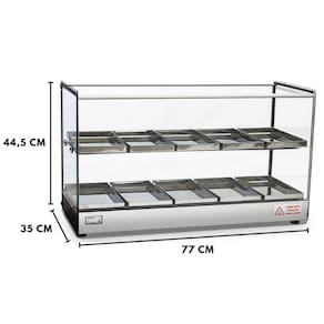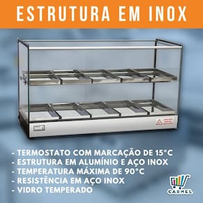 Uma excelente opção econômica para seu estabelecimento. Com bandejas internas em aço inox brilhante. Possui termostato para controle de temperatura, cada marcação do termostato representa aproximadamente uma temperatura de 15 C. Todos os vidros são temperados. Não possui iluminação.