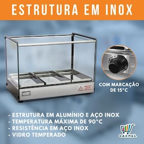 Uma excelente opção econômica para seu estabelecimento. Com bandejas internas em aço inox brilhante. Possui termostato para controle de temperatura, cada marcação do termostáto representa aproximadamente uma temperatura de 15 C. Todos os vidros são temperados. Não possui iluminação.