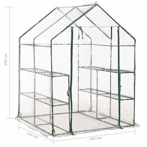 Esta estufa é estruturada com estrutura de aço resistente e filme de PVC, que oferece durabilidade superior e uso duradouro. Construída com 8 prateleiras com arame (4 em cada lado), esta estufa oferece amplo espaço para suas plantas brotando, flores desabrochando e ervas e vegetais frescos. A tampa de plástico transparente permite que a luz do sol alcance as flores e plantas, além disso, você pode monitorar suas plantas o tempo todo. Projetado com porta de enrolar com zíper, ele facilita a circulação de ar e facilita