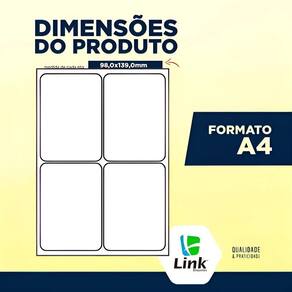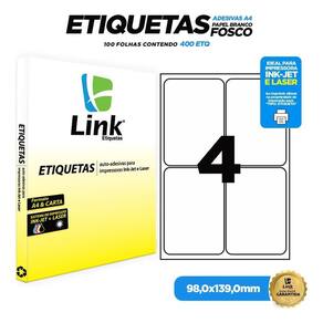 Transforme sua organização e impulsione seus negócios com etiquetas de alta performance que garantem resultados impecáveis Descubra o poder da praticidade e profissionalismo em cada aplicação: Impressão Versátil: Perfeitas para impressoras a Laser, Inkjet e Ecotank, garantindo compatibilidade total para suas necessidades. Formato Ideal: Tamanho 98,0mm x 139,0mm no padrão A4, otimizando o espaço e facilitando o manuseio. Quantidade Generosa: Caixa com 100 folhas, totalizando 400 etiquetas prontas para uso, ideal para grandes volumes. Adesão Confiável: Alta qualidade de adesivo que garante fixação segura em diversas superfícies. Acabamento : Garanta um visual limpo e organizado para seus produtos, envios e documentos. Especificações Técnicas Detalhadas: Código do Produto: 9002 Formato do Papel: A4 Dimensões da Etiqueta: 98,0mm largura x 139,0mm altura Etiquetas por Folha: 04 unidades Total de Etiquetas na Caixa: 400 etiquetas Quantidade de Folhas: 100 folhas Compatibilidade: Impressoras Laser, Inkjet e Ecotank Tipo: Etiqueta Adesiva Não perca mais tempo com soluções ineficientes Adquira agora seu kit de etiquetas A4 e eleve o padrão dos seus trabalhos e empreendimentos. Clique em comprar e receba rapidamente Marca: Não Informado
