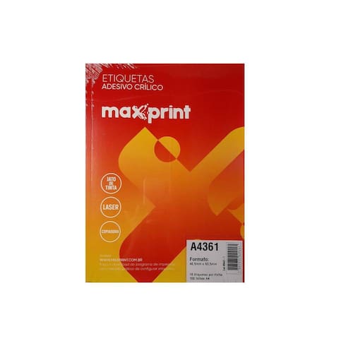 Item Incluso: 1 pacote com 100 Folhas, cada folha possui 18 Totalizando 1800 etiquetas auto-adesiva com cola Acrílica Permanente que serve para uma variedade de aplicações utilizado em impressoras jato de tinta, laser e copiadora. atenção: Produto não impermeável ou seja é impróprio quando é necessário que a impressão Fique exposto com a presença de qualquer tipo de produto Líquido. Ficha técnica - Acabamento: Verjurado - É adesivo: Sim - Formato de venda: Unidade - É resma: Não Ean: 7897975029241
