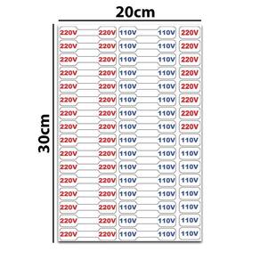 Etiqueta Adesivo De Voltagem 110v E 220v Tomadas E Cabos MEDIDAS - 48 Adesivos de Voltagem 110V e 220V, sendo: * 16 unidades de 110V comprido de 8x1,7cm * 16 unidades de 220V comprido de 8x1,7cm * 8 unidades de 110V simples de 3x1,7cm * 8 unidades de 220V simples de 3x1,7cm MATERIAL -adesivo vinílico fosco não tóxico TIPO DE IMPRESSÃO - Impressão em alta resolução livre de imperfeições. OBSERVAÇÕES Adesivos de alta qualidade para você identificar suas tomadas e eletrônicos. Os adesivos são impressos em vinil auto-adesivo branco, resistentes e a prova d'água. A aplicação é muito simples, é só tirar o adesivo e colar como quiser. Os Adesivos já seguem com os recortes para agilizar e facilitar sua instalação, cortes feitos com alta precisão no momento da impressão para garantir a melhor qualidade. Podem ser aplicados em paredes lisas, com tinta acetinada, latex e acrílica, móveis, espelhos, portas, box de banheiro, livres de poeira ou pó de gesso. Não aplicar sobre tinta fresca, tinta magnética, superfícies irregulares ou texturizadas, locais com infiltrações. PRODUTO NÃO TOXICO