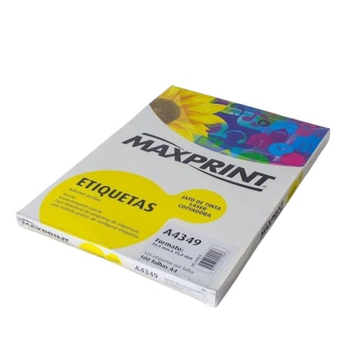 Etiqueta Auto Adesiva Papel A4 126 Etiquetas por Folha Pacote com 100 Folhas Ref: A4349 Para impressora: Jato de tinta, Laser e Copiadora. Formato: A4. Modelo: A4349. Formato da Etiqueta: 26,0 x 15,0 mm. Quantidade por Folha: 126 Etiquetas. Fabricante: Maxprint Quantidade: 100 Folhas Ean: 7897975029098